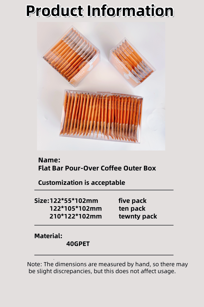 For kunder, der tilpasser kaffe ydre poser, giver valg af en gennemsigtig ydre boks dig mulighed for tydeligt at se dine tilpassede kaffe ydre poser.